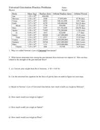 In this universal gravitation worksheet, students answer thirteen questions using the equation for universal gravitation, and force equals mass times acceleration.